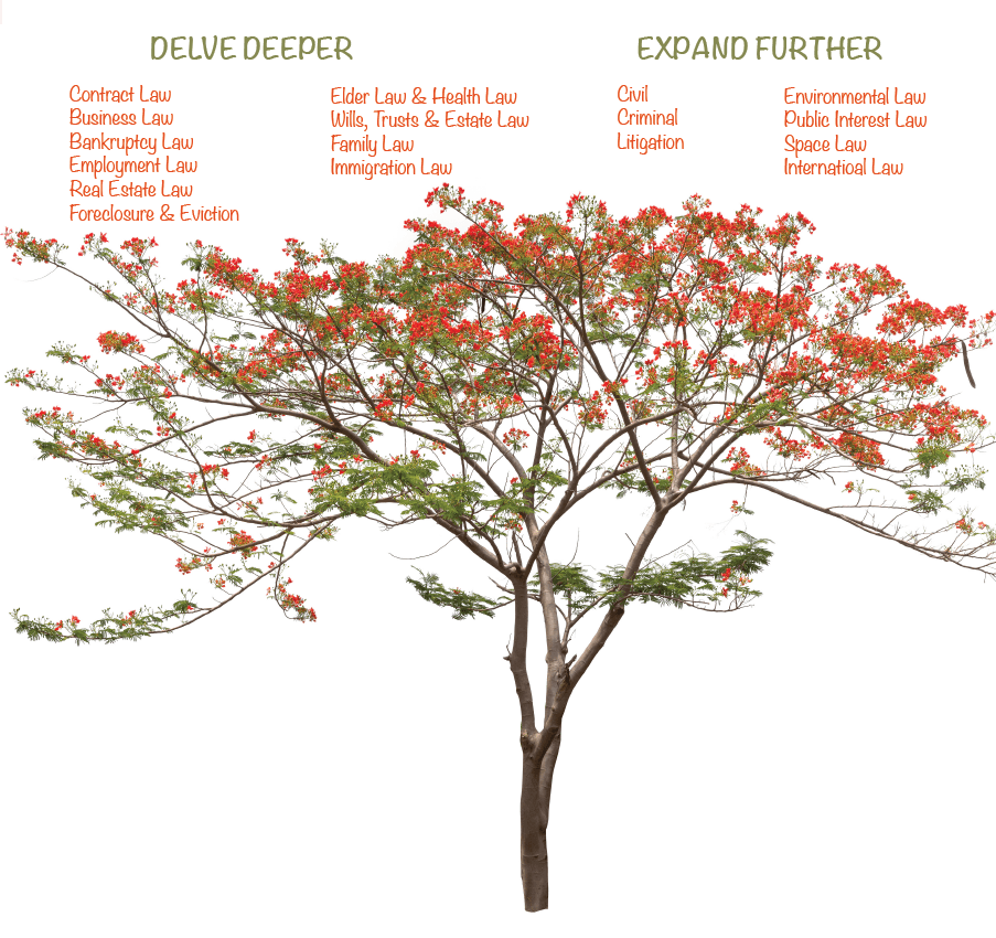 As our knowledge gains more solid form and fluidity, it resembles the trunk of a growing tree widening our perspective. As we pursue our professional roles, this effort begins finally to coalesce and bloom like the spectacular flowers of the the Royal Poinciana tree. Some paralegals gradually delve deeper into one of the dozen of law practice areas in which the seeds of our legal pursuits first took root. Some of us look to expand further into new areas. Our paralegals share their journeys on the Ideas Blog.